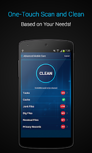 Just with one tap, you can release memory by cleaning tasks, cache, junk files, big files, residual files and privacy records based on your needs.