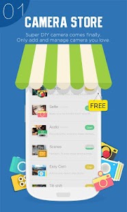 Eight creative cameras of Camera360 are moved to “Camera Store” where you can add and manage your preferred camera only. Like it? Get it! Dislike it? Forget it? Do not like it any more? Delete it. Effect Cam, Selfie Cam, Easy Cam, Scene Cam, Funny Cam, Tilt-shift Cam, Color-shift Cam and Audio Cam are now available for free now. Why not customize your own Camera360 now?
